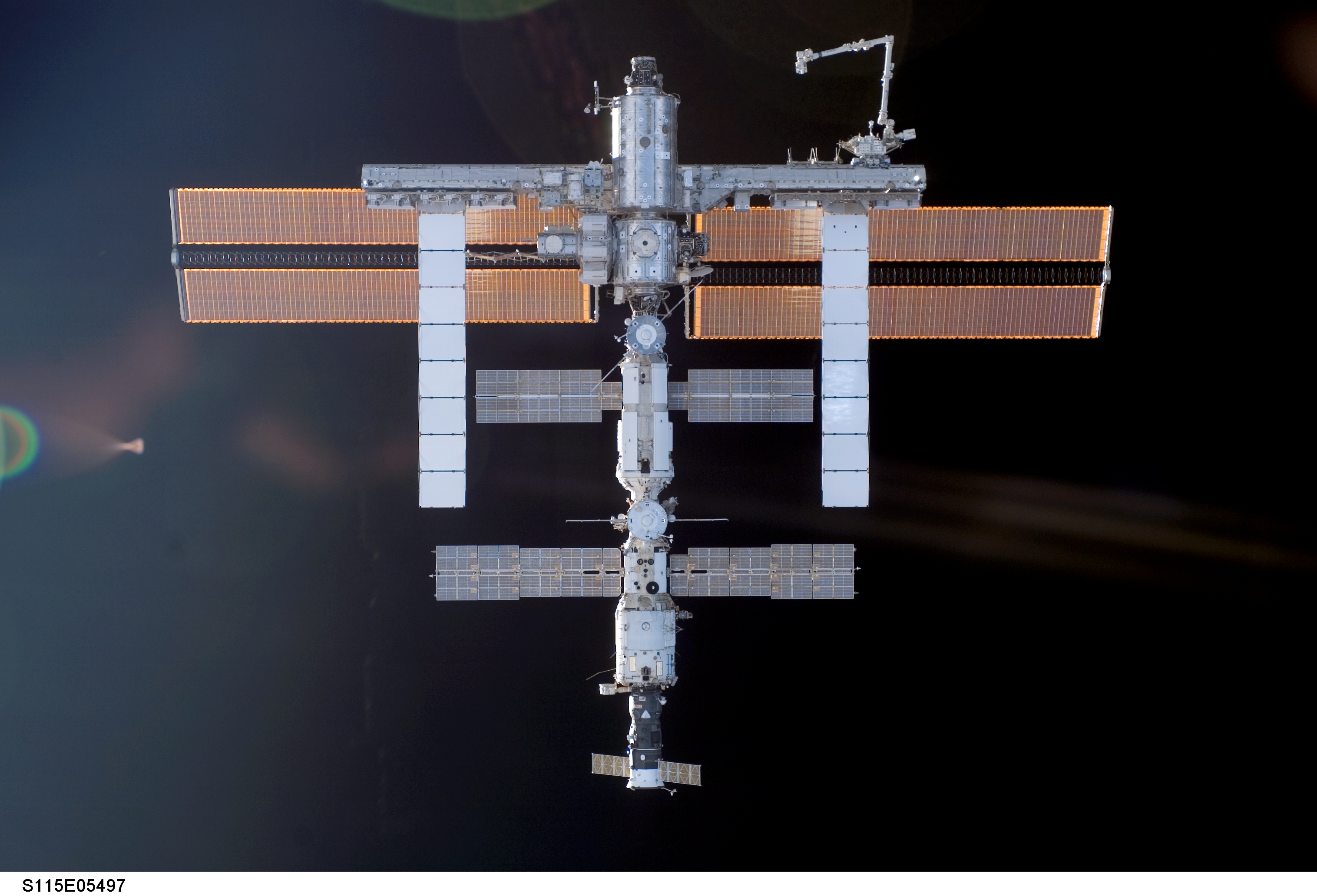 S115-E-05497 (11 Sept. 2006) --- One of the STS-115 crewmembers aboard the Space Shuttle Atlantis took this picture of the International Space Station prior to the docking of the two spacecraft. The subsequent link-up will allow the STS-115 astronauts and the ISS Expedition 13 crew to team up for several days of key tasks in space.