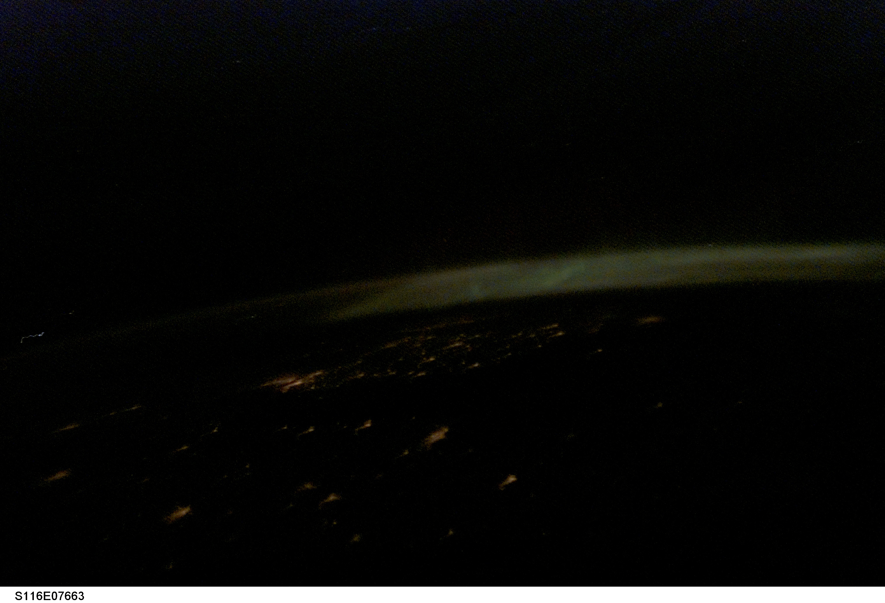 S116-E-07663 (20 Dec. 2006) --- One of the STS-116 crewmembers onboard the Space Shuttle Discovery captured this picture of Aurora Borealis over Norway, Poland and Sweden, as the crew made preparations for a Dec. 22 landing. European Space Agency astronaut Christer Fuglesang onboard the shuttle noted the rarity of pictures over this area from shuttle missions, and especially pictures that included the Northern Lights. Fuglesang is from Sweden. The city lights of Copenhagen (bright cluster of lights in the middle left portion of the image), Stockholm (under the aurora on the far right side of the image), and Gdansk (in the center forefront) are seen. The formation of the aurora starts with the sun releasing solar particles. The Earth's magnetic field captures and channels the solar particles toward the Earth's two magnetic poles (north and south). As the solar particles move towards the poles they collide with the Earth's atmosphere, which acts as an effective shield against these deadly particles. The collision between the solar particles and the atmospheric gas molecule emits a light particle (photon). When there are many collisions the aurora is formed.