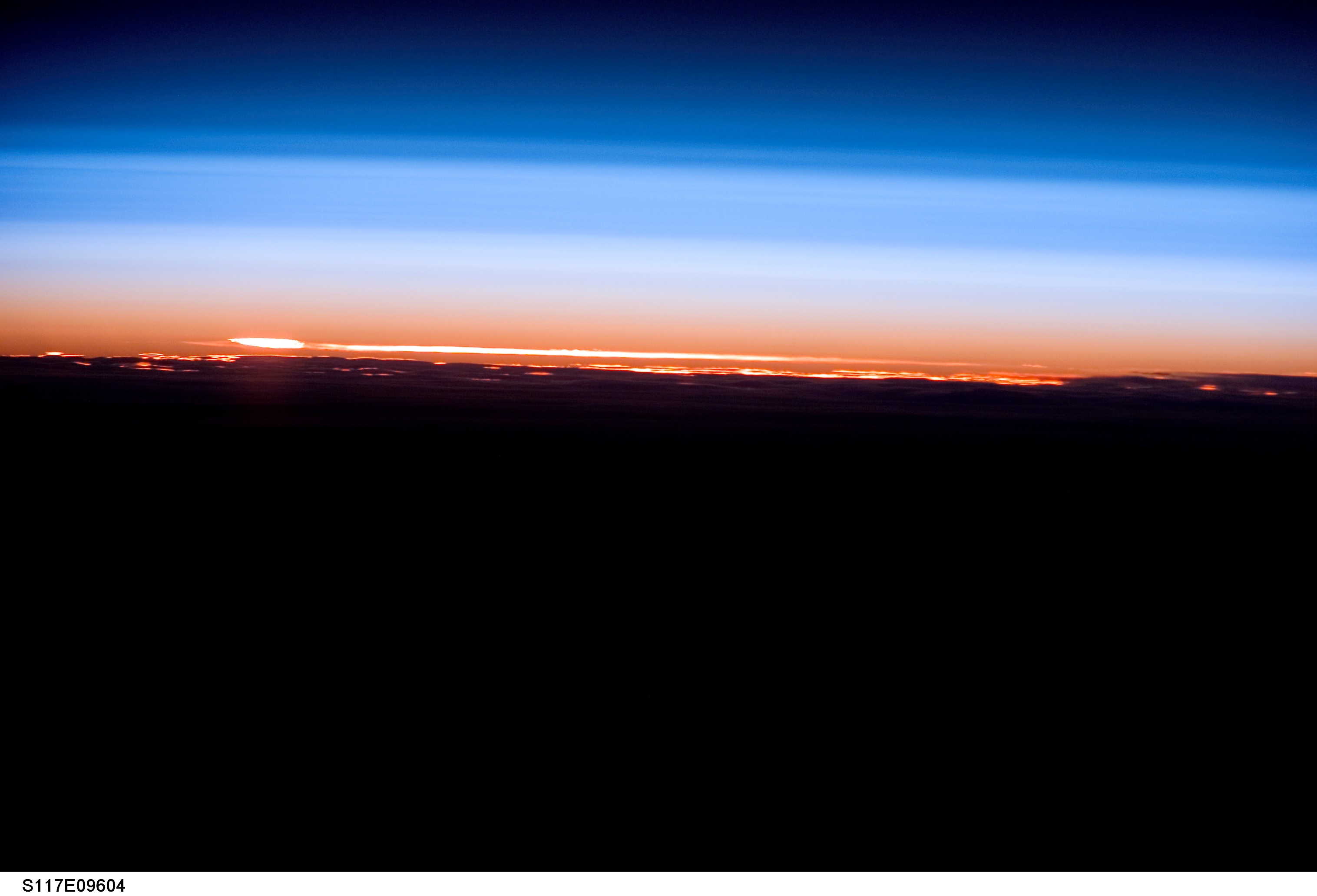 S117-E-09604 (21 June 2007) --- The profile of the atmosphere and a setting sun are featured in this image photographed by a STS-117 crewmember onboard Space Shuttle Atlantis.