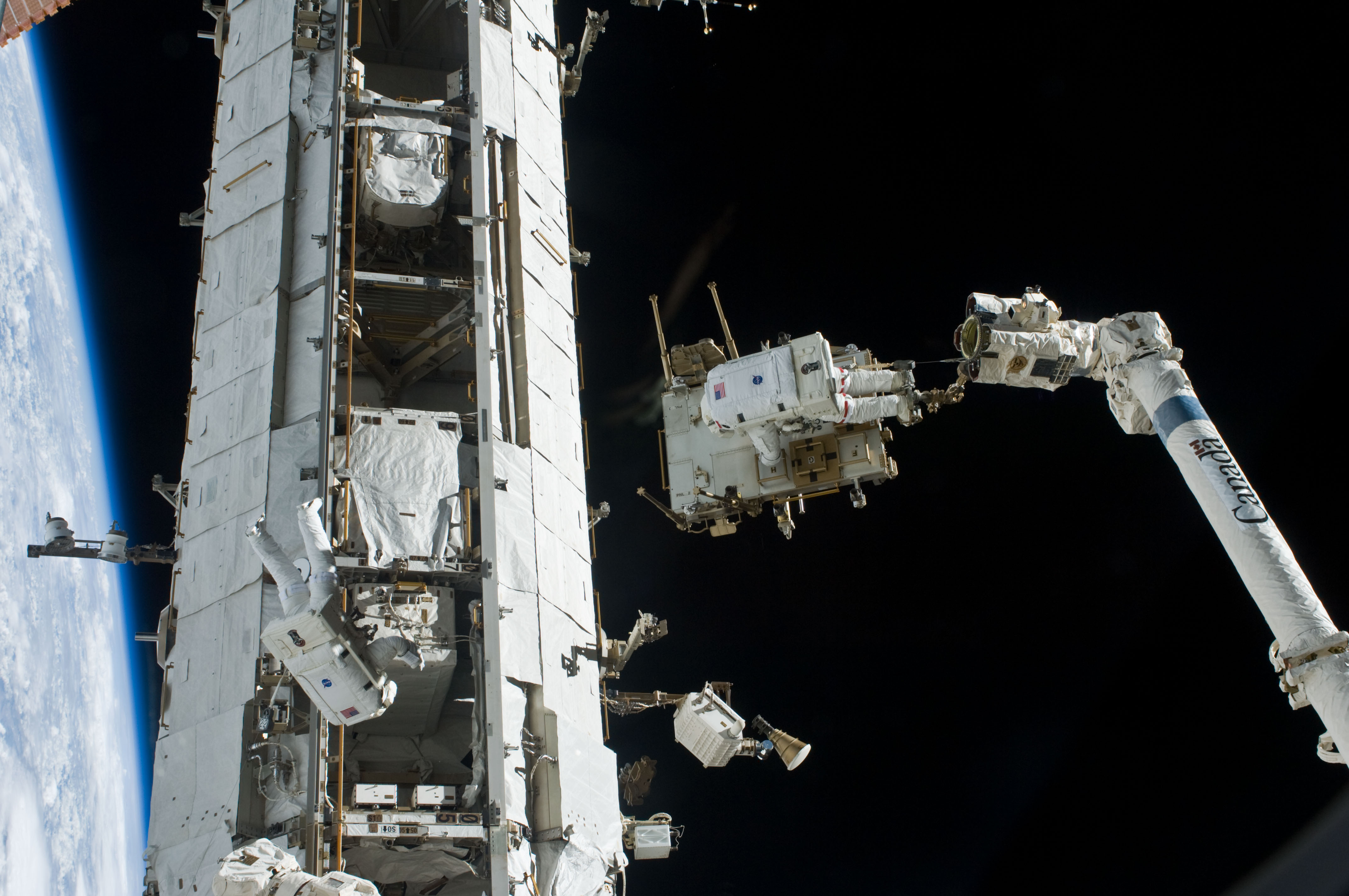 S119-E-007259 (23 March 2009) --- Astronauts Richard Arnold (left) and Joseph Acaba, both STS-119 mission specialists, participate in the mission's third scheduled session of extravehicular activity (EVA) as construction and maintenance continue on the International Space Station. During the six-hour, 27-minute spacewalk, Arnold and Acaba helped robotic arm operators relocate the Crew Equipment Translation Aid (CETA) cart from the Port 1 to Starboard 1 truss segment, installed a new coupler on the CETA cart, lubricated snares on the "B" end of the space station's robotic arm and performed a few "get ahead" tasks.