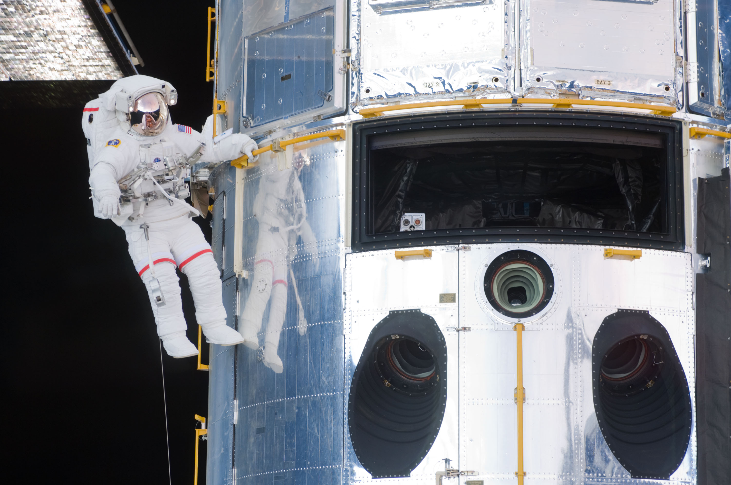 S125-E-007225 (14 May 2009) --- Astronaut John Grunsfeld performs work on the Hubble Space Telescope as the first of five STS-125 spacewalks kicks off a week?s worth of work on the orbiting observatory. Grunsfeld, a spacewalk veteran with a long relationship with the telescope, will participate in two of the remaining four sessions of extravehicular activity later in the mission.