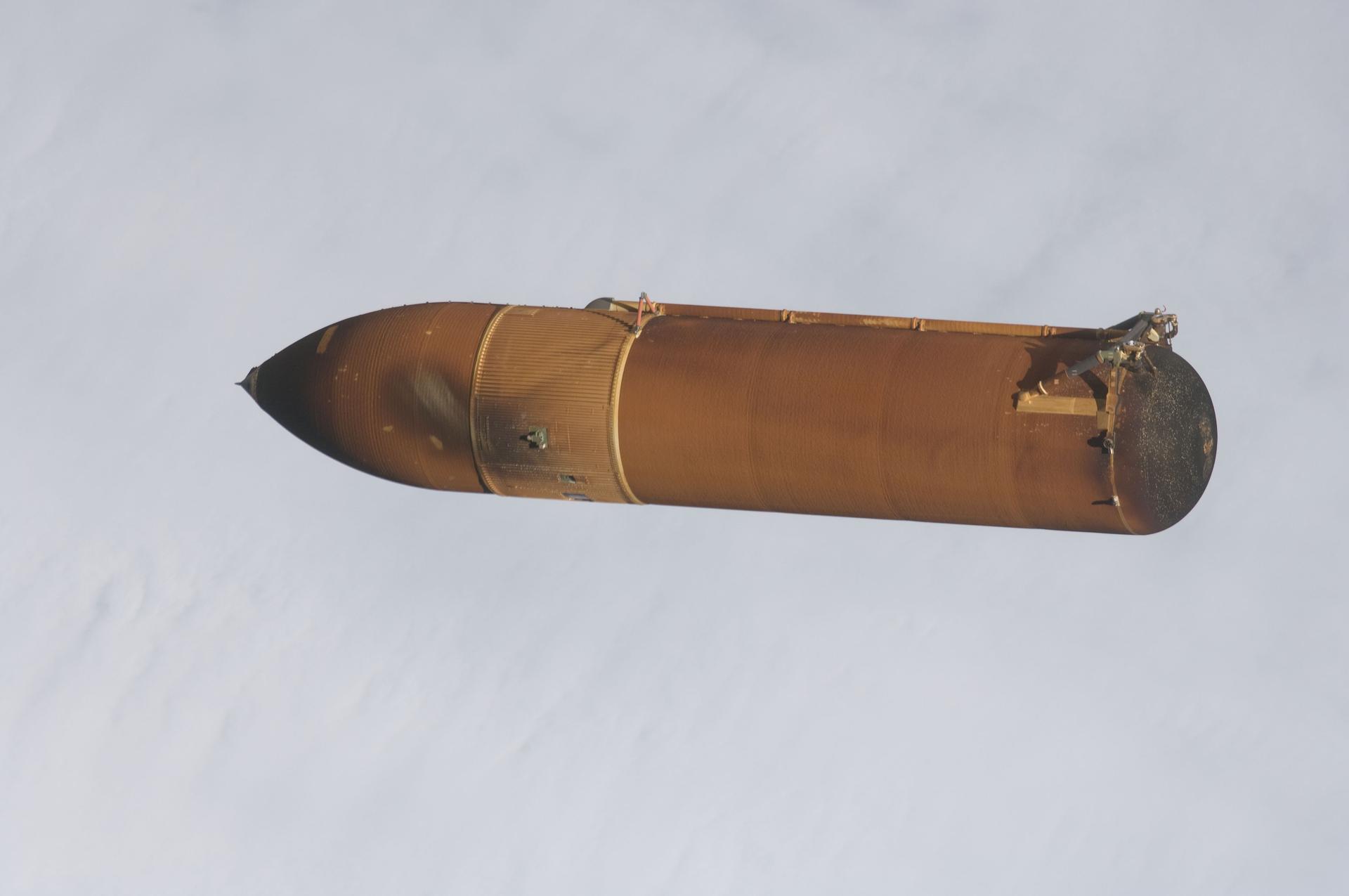 S134-E-005102 (16 May 2011) --- The STS-134 external fuel tank is seen during its release from space shuttle Endeavour in space following the successful launch on May 16, 2011. An STS-134 crew member using a hand-held still camera exposed the image. Photo credit: NASA