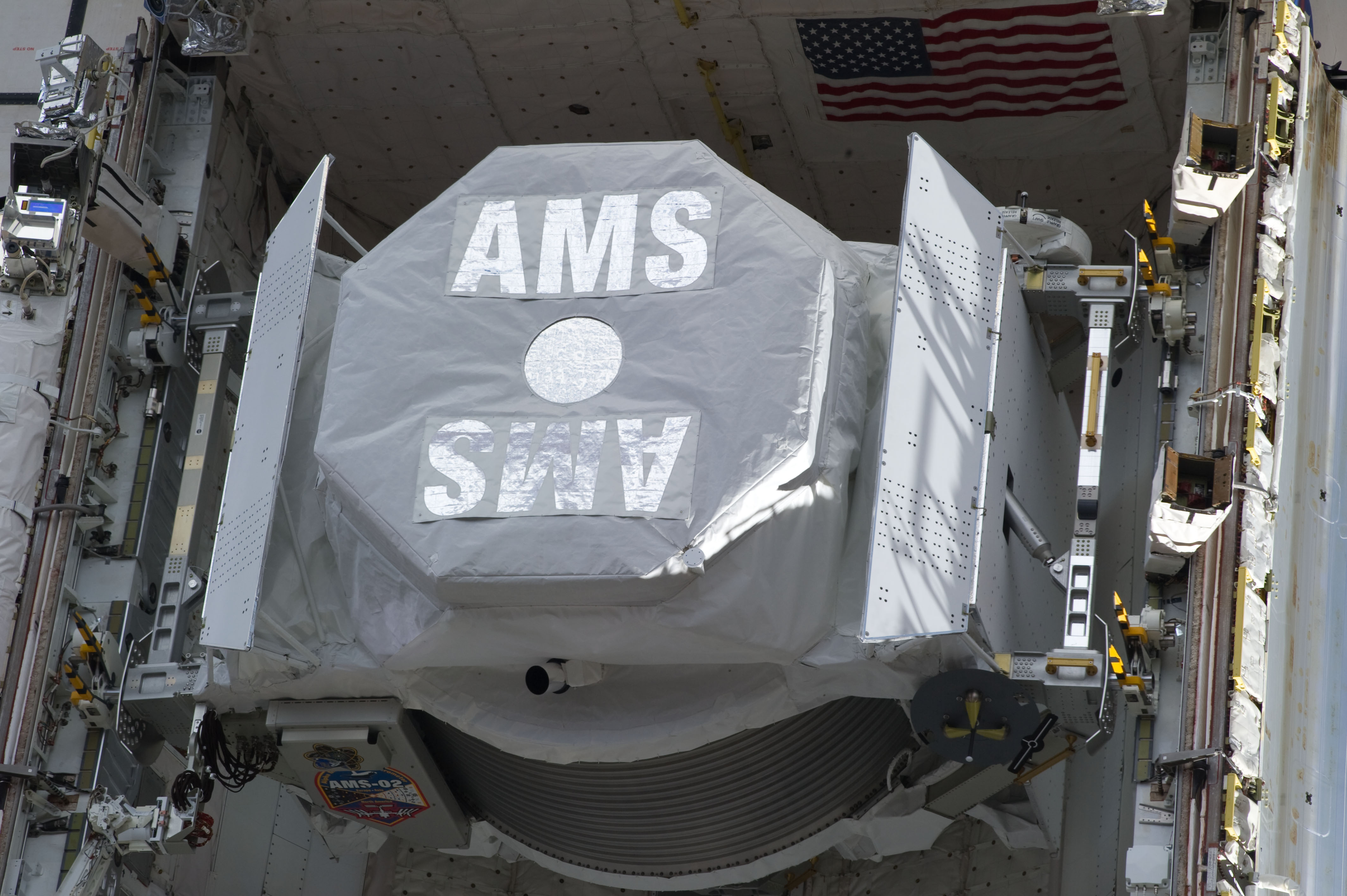 S134-E-007381 (19 May 2011) --- The Alpha Magnetic Spectrometer-2 (AMS) in the space shuttle Endeavour?s payload bay is featured in this image photographed by an STS-134 crew member while docked with the International Space Station. Shortly after this image was taken, the AMS was moved from the payload bay to the station?s starboard truss. Photo credit: NASA
