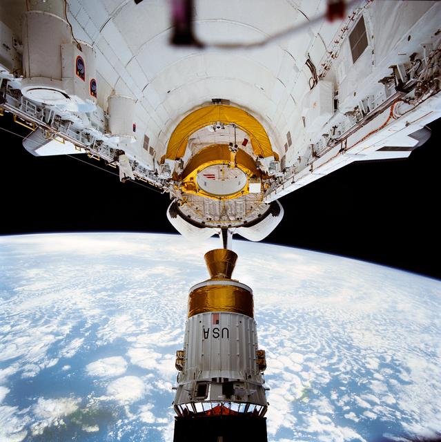 STS043-72-059 (2 Aug 1991) --- The Tracking and Data Relay Satellite (TDRS-E), leaves the payload bay of the earth-orbiting Atlantis a mere six hours after the Space Shuttle was launched from Pad 39A at Kennedy Space Center, Florida. TDRS, built by TRW, will be placed in a geosynchronous orbit and after on-orbit testing, which requires several weeks, will be designated TDRS-5. The communications satellite will replace TDRS-3 at 174 degrees West longitude. The backbone of NASA's space-to-ground communications, the Tracking and Data Relay satellites have increased NASA's ability to send and receive data to spacecraft in low-earth orbit to more than 85 percent of the time. The five astronauts of the STS 43 mission are John E. Blaha, mission commander, Michael A. Baker, pilot, and Shannon W. Lucid, G. David Low, and James C. Adamson, all mission specialists.