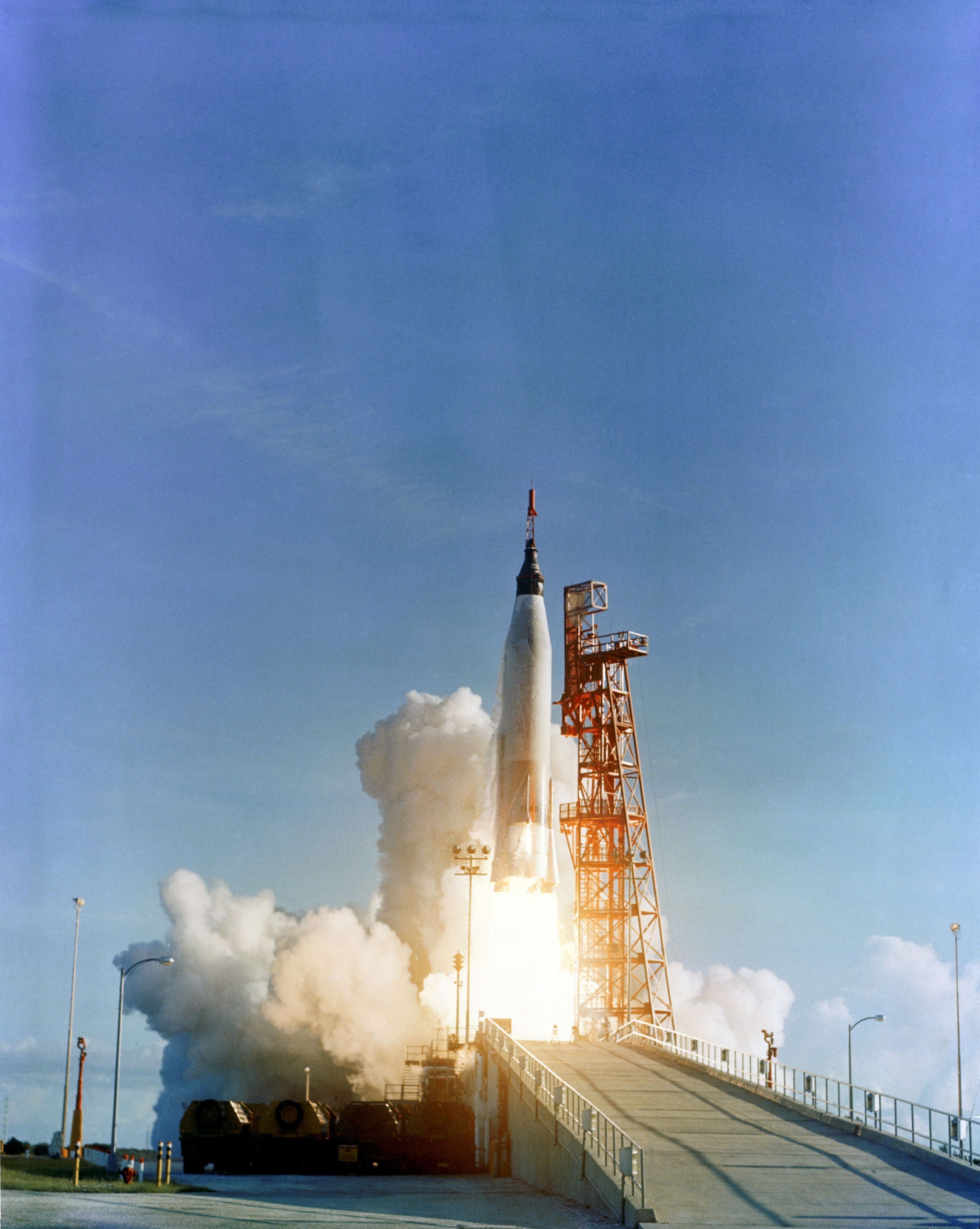 S62-07872 (3 Oct. 1962) --- Launch of the Mercury-Atlas 8 (MA-8) "Sigma 7" mission, carrying astronaut Walter M. Schirra Jr., pilot of the Earth-orbital spaceflight. Photo credit: NASA