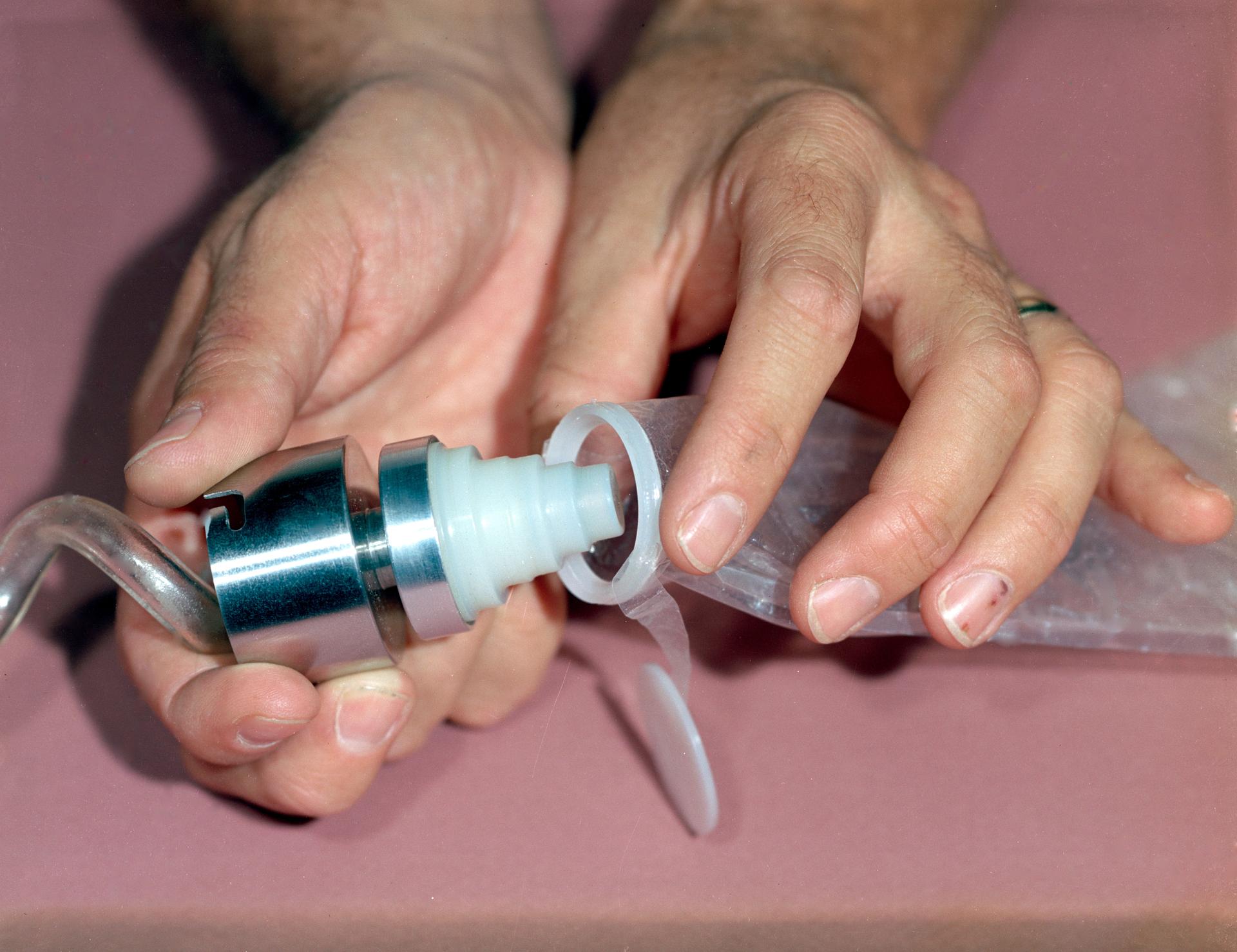 S62-08744 (1962) --- Mechanism for connecting water dispensor to dehydrated food containers to facilitate rehydration used by Mercury astronauts. Photo credit: NASA