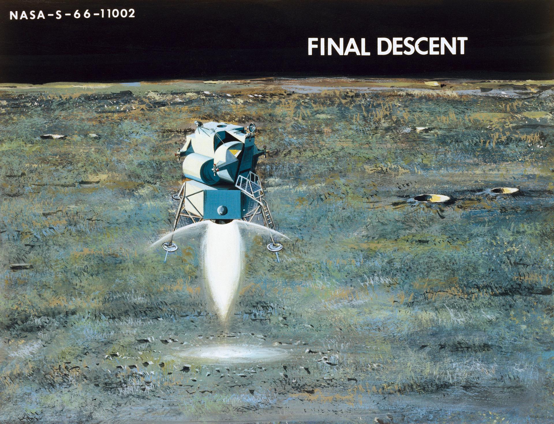 Artist Concepts, Apollo Mission: S66-10983: Ascent Stage Liftoff (S66-05094) S66-10984: Orientation During Ascent Phase (S66-05098) S66-10985: Midcourse Coast (S66-05113) S66-10986: Survey of Landing Site (S66-05117) S66-10987: Lunar Module (LM) Jettison (S66-05089) S66-10988: Trans-Earth Injection (S66-05090) S66-10989: Exploration on Lunar Surface Apollo Surface Lunar Exploration Experiment (ASLEP) S66-10990: Liftoff (S66-05125) S66-10991: Command Module (CM)-Service Module (SM) Separation (S66-05101 N/F) S66-10992: Touchdown on Lunar Surface (S66-05115) S66-10993: Transfer Orbit Insertion (S66-05111) S66-10994: Drogue Parachute Deployment S66-10995: S-IC Stage Separation S-II Stage Thrusting (S66-05099) S66-10996: Jettison Launch Escape System (S66-05114) S66-10997: Main Parachute Deployment (S66-05091) S66-10998: Mid-course correction (S66-05088) S66-10999: Lunar Orbit Insertion (S66-05086) S66-11000: Command Service Module (CSM)-LM Docked in LM Adapter-S-IVB (S66-06526) S66-11001: Docking and Separation of spacecraft from S-IVB (S66-05107) S66-11002: Final Descent (S66-05096) S66-11003: Entry into Earth Atmosphere (S66-05096) S66-11004: Deploy S/C LM Adapter-Separate CSM from LM-S-IVB (S66-06525 & 05105) S66-11005: Turnaround of CSM (S66-05104) S66-11006: S-II Stage Separation S-IVB Stage Thrusting (S66-05102) S66-11007: LM Ascent CSM Docked (S66-05100) S66-11008: Midcourse Correction SPS Mode (S66-05106) S66-11009: Earth Orbit Insertion of S-IVB & S/C (S66-05092) S66-11010: Trans-lunar Injection (S66-05116) S66-11011: LM Descent (S66-05110) S66-11012: S-IVB Stage Operations (S66-05112 N/F) S66-11013: Spacecraft Recovery (S66-05126) S66-11014: Lunar Orbit (S66-05103) S66-11015: CSM-LM Docking (S66-05095) S66-11016: Entry CM (S66-5109) S66-11017: Midcourse Corrections to Lunar Landing (S66-08486) S66-11018: Midcourse Corrections to Lunar Landing w/Overlay (S66-05083) S66-11019: Earth Launch Phase w/Overlay (S66-08485 & 05119) S66-11020: Earth Launch Phase (S66-08487 & S66-05084) S66-11022: Apollo Vehicles (S66-05127) S66-11024: Transfer to LM (S66-05082) S66-11025: Lunar Launch Phase S66-11027: Trans-earth Separation of C/M from S/M-C/M return to Earth (S66-05097) S66-11028: CSM-LM Separation, LM Descent to Moon (S66-05108) MSC, Houston, TX Also available in B&W 12/1965 - 06/1966