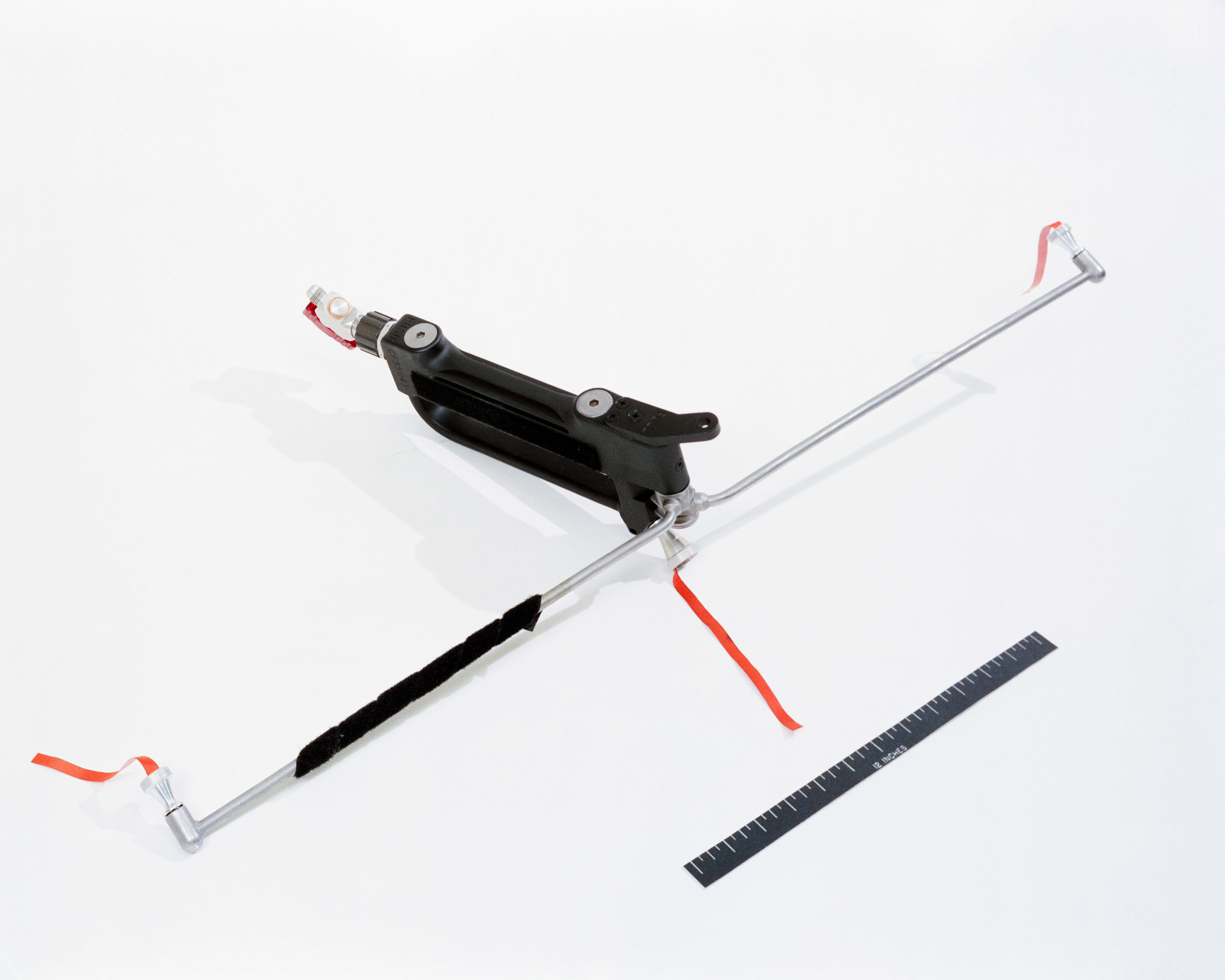 S66-19184 (1966) --- Close-up view of the Hand Held Maneuvering Unit which will be used by astronaut David R. Scott during the extravehicular activity on the Gemini-8 spaceflight. High pressure cold gas released through the unit's nozzles produces the required controlled thrust to maneuver in a zero-gravity environment. Photo credit: NASA