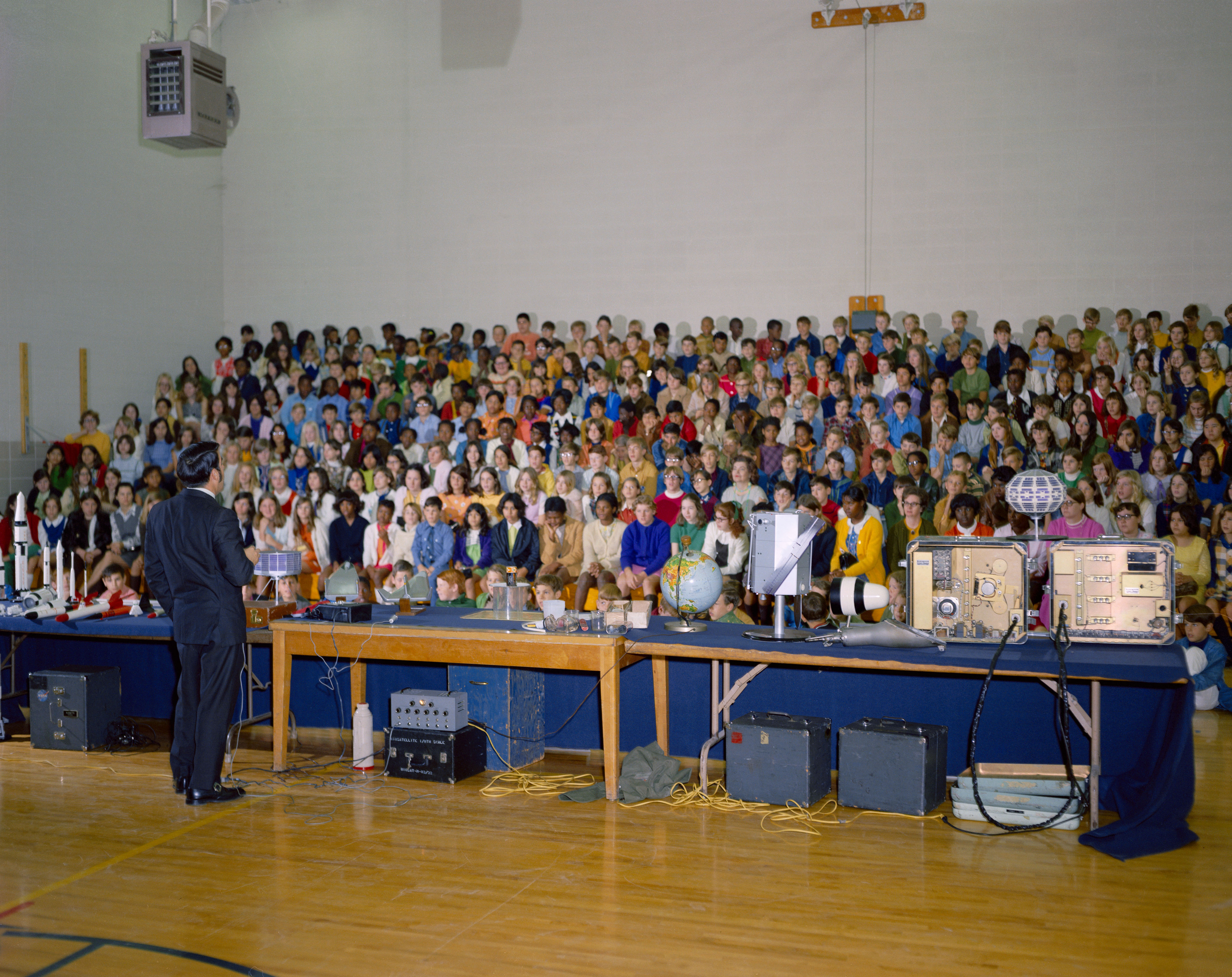 J. D. Poindexter, Space Science Education specialist, gives a demonstration at McAdams Elementary School.