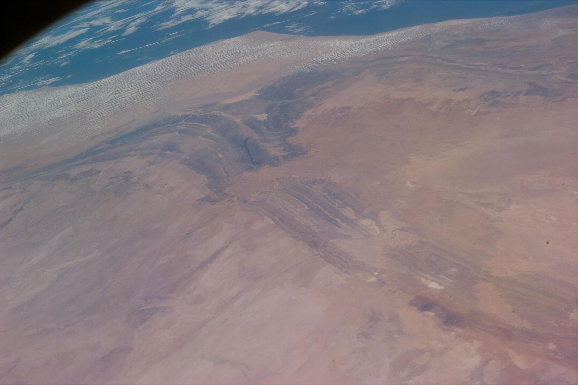 STS79-E-5385 (16 - 26 September 1996) --- The Atlas Mountains, as seen from the Space Shuttle Atlantis, apparently have not changed much in 35 years of Earth observations from space as testified by astronaut Jerome (Jay) Apt, who took this picture with an Electronic Still Camera (ESC). Astronaut John Glenn on NASA's MA-6 mission, took the first image of this area from space.