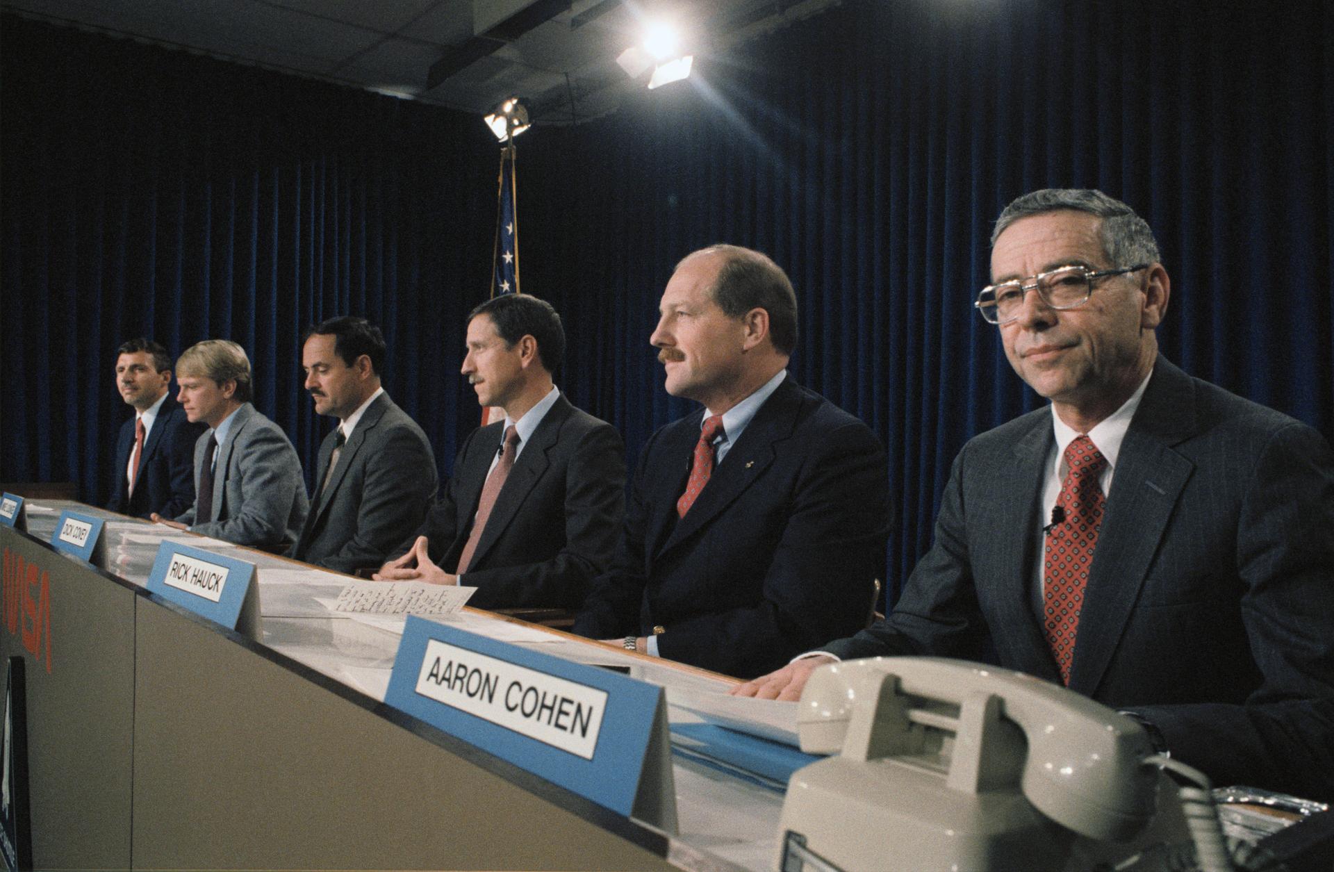Views of the STS-26R Crew Press Conference, 01/15/1987.