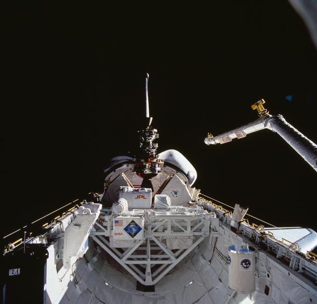 STS052-80-024 (23 Oct 1992) --- One of a series of three views of the deployment of the Laser Geodynamic Satellite (LAGEOS). The photograph was taken with a 70mm handheld camera aimed through the aft flight deck windows of the Earth-orbiting Space Shuttle Columbia. A crew of five NASA astronauts and a Canadian payload specialist spent ten days aboard Columbia for the STS-52 mission.