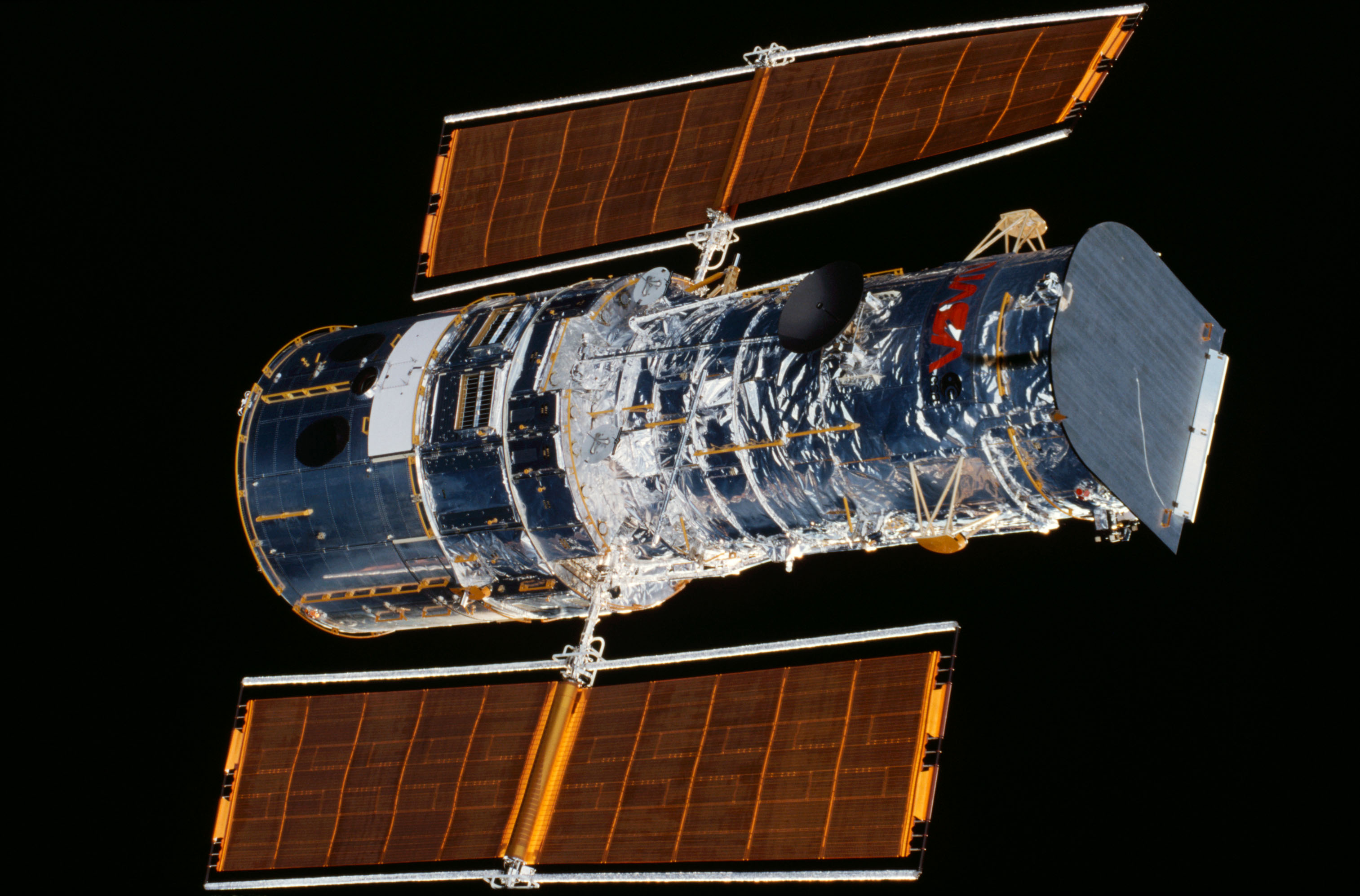 STS103-305-016 (19-27 December 1999)--- One of the crew members onboard the Space Shuttle Discovery recorded this 70mm image of the Hubble Space Telescope (HST) prior to its temporary capture with the remote manipulator system (RMS). Two teams of astronauts later acomplished three spacewalks to service the giant telescope.