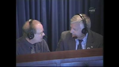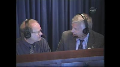 NASA Commentator Bruce Buckingham interviews Kennedy Space Center Director James Kennedy during the countdown to the launch of CALIPSO_CloudSat aboard a Delta II rocket from Vandenberg Air Force Base in California. CALIPSO stands for Cloud-Aerosol Lidar and Infrared Pathfinder Satellite Observation. It will fly in combination with the CloudSat satellite to provide never-before-seen 3-D perspectives of how clouds and aerosols form, evolve, and affect weather and climate. CALIPSO and CloudSat will join three other satellites in orbit to enhance understanding of climate systems.